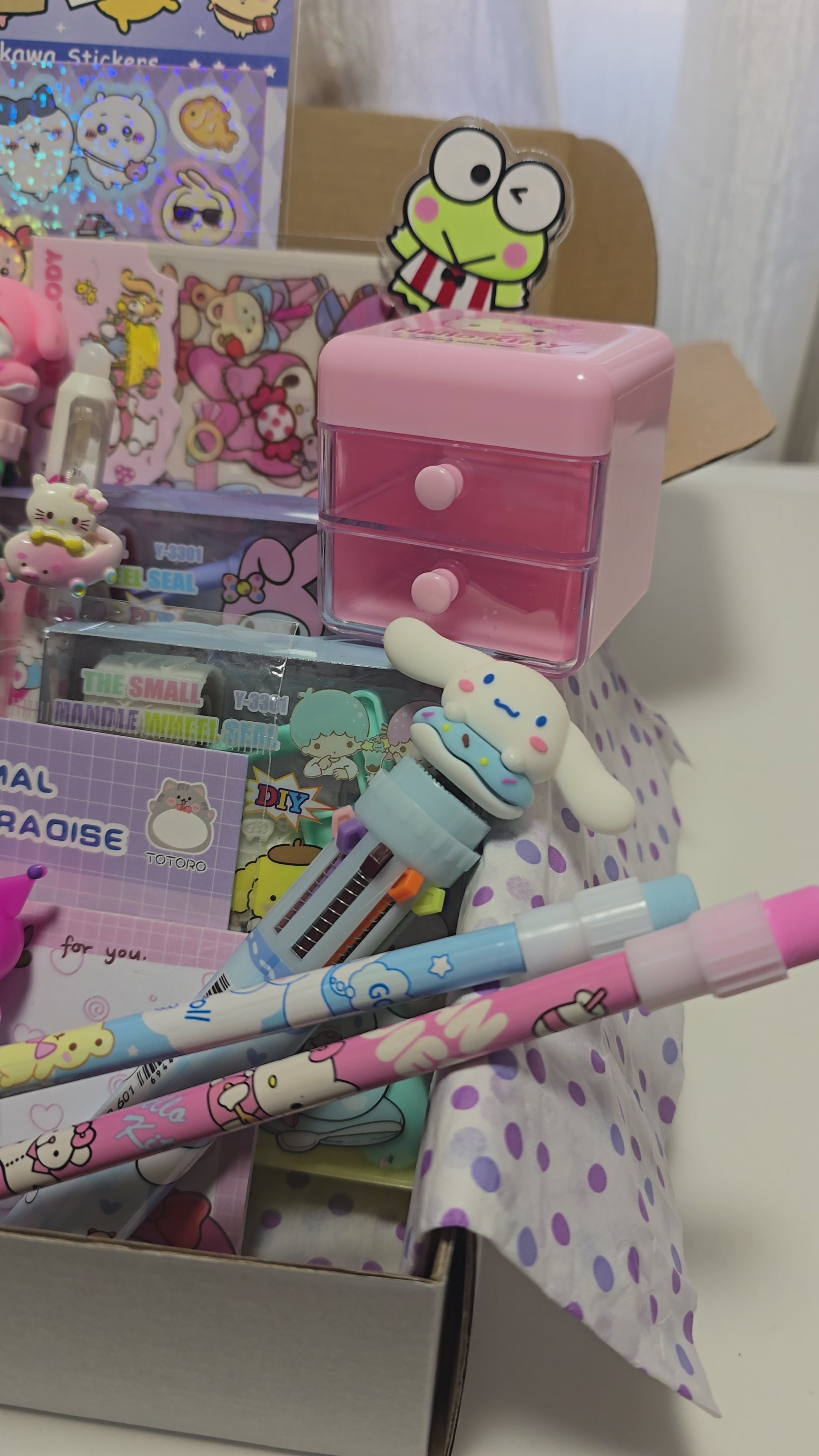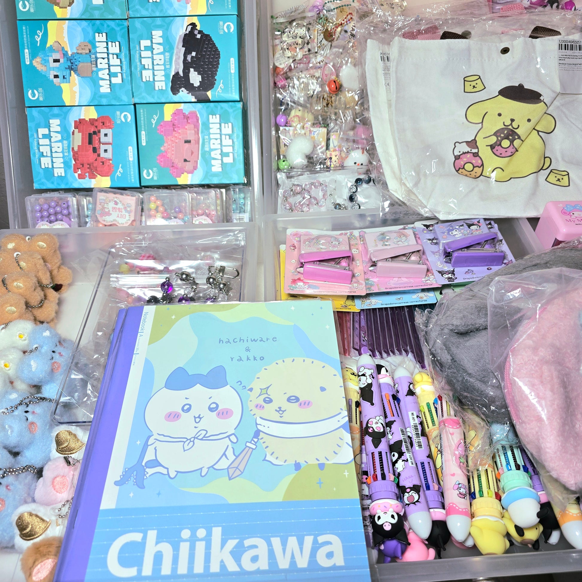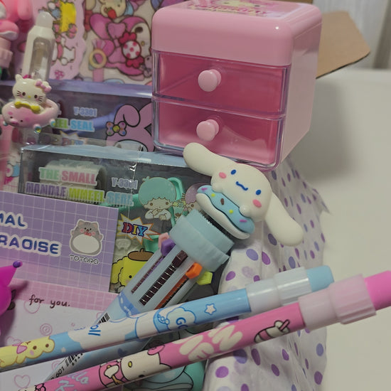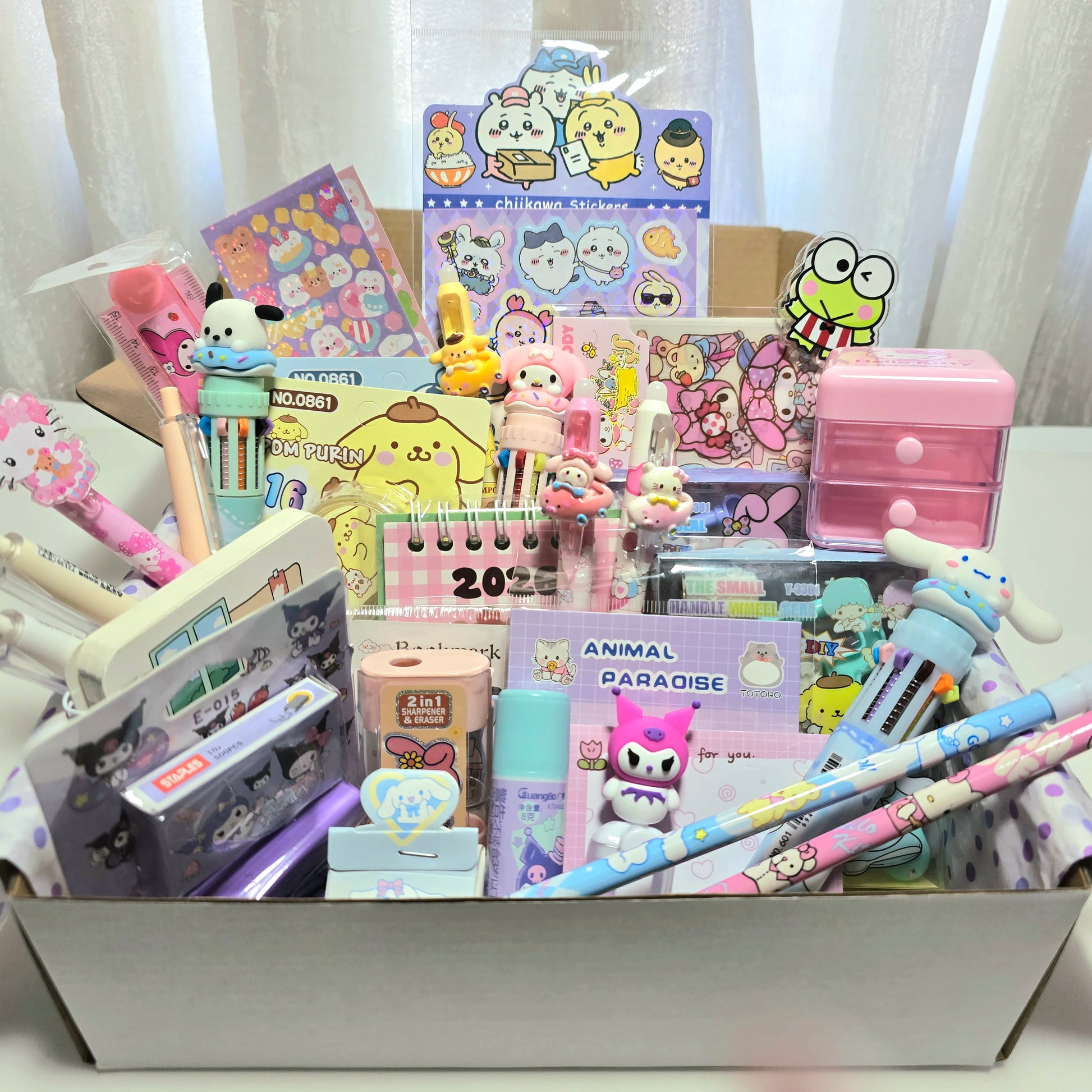 Find a wide variety in cute stationary. Note books, pens, rulers, stamps, correction tape and much more. One Large Scoop goes a long way with approximately 25 to more then 30 items, plus 1 Freebie!