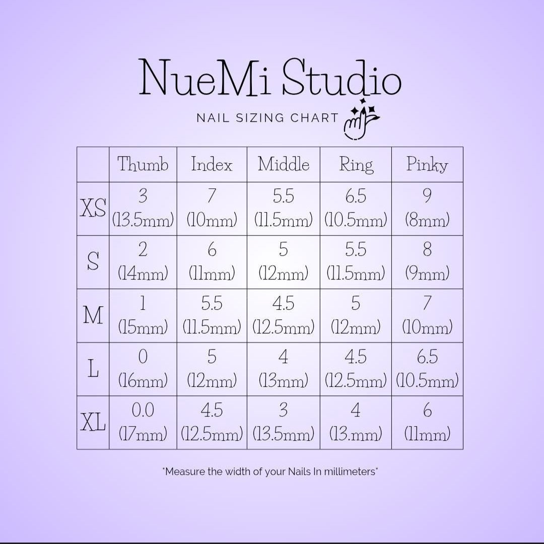 Pick the nail size that best corresponds to your Measurements in the sizing chart